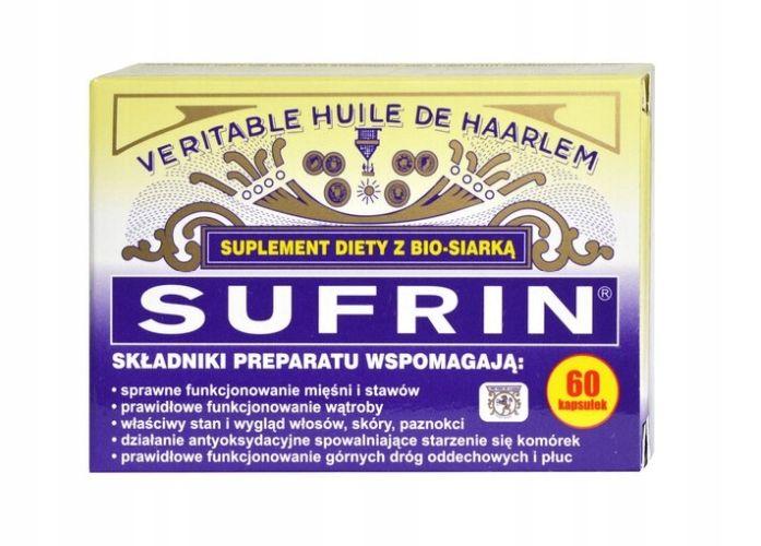Opakowanie zawiera 60 kapsułek suplementu diety Sufrin.